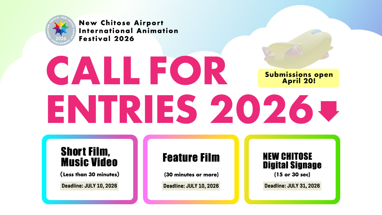 Submit your animated film now, for a chance to be selected for NEW CHITOSE 2026!Selected short and feature films will be screened in the Official Selection programs during the festival (November 20-24). The International Jury will present awards following deliberation during the festival.
